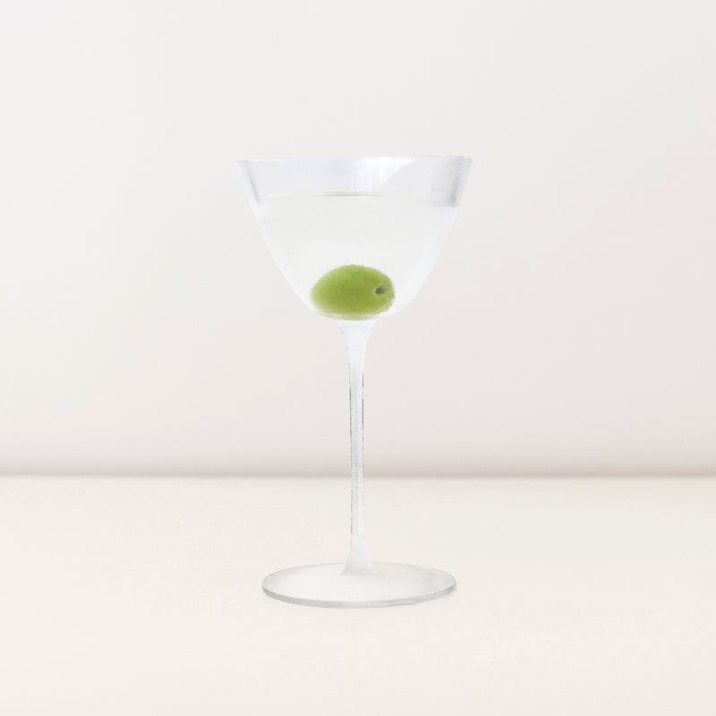 Put a stemmed glass in the freezer to chill. Fill a mixing glass or small jug with ice and add the liquid ingredients. Stir for 20-30 seconds, tasting regularly - you're looking for the point where the acohol no longer bites. Pour into your chilled glass and add a green olive.